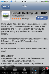 Download dan Install aplikasi “Remote Desktop Lite” melalui App Store