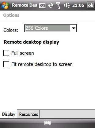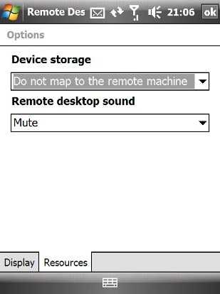 Option – Display (256 Colors) – Resource (Remote Desktop Sound : Mute)