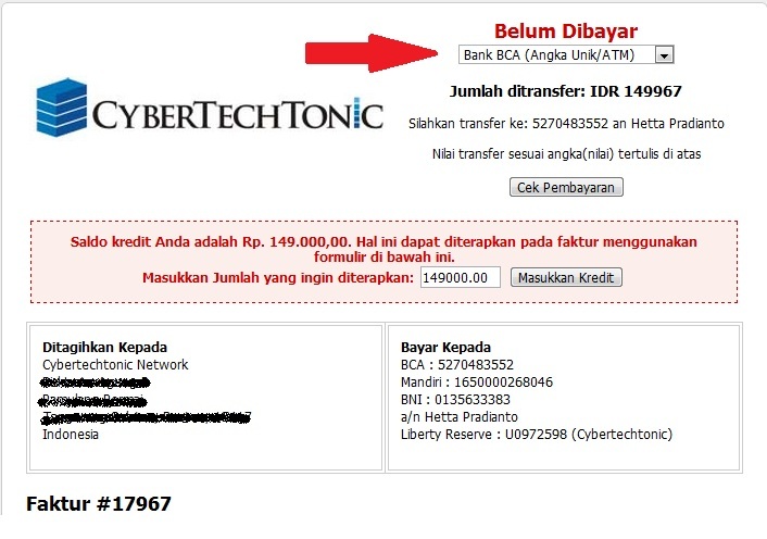 Silahkan transfer ke: 1650000268046 an Cybertechtonic Pratama