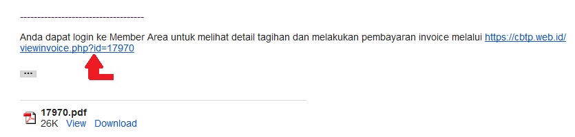 2. Untuk pembayaran perpanjang otomatis. Klik link invoice yang terdapat pada email tagihan anda (link ada di bagian bawah isi email).