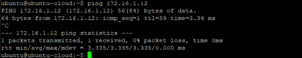 64 bytes from 172.16.1.12: icmp_seq=1 ttl=59 time=3.34 ms.