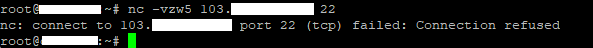Contoh selanjutnya adalah port scanning ke port 22 dengan hasil “Connection refused”. Artinya packet yang dikirimkan oleh Netcat sampai ke port tujuan, akan tetapi target langsung mengirimkan penolakan berupa packet dengan flag RST. Ibaratnya seperti kita memanggil seseorang, “halo dek”, orang tersebut tahu kita memanggilnya, akan tetapi dia hanya menjawab “gak”.