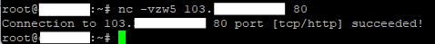 Di atas adalah contoh menggunakan Netcat untuk meng-scan port 80 pada IP 103.XXX.XXX.XXX. Karena kita menggunakan flag -v, maka Netcat menampilkan informasi “succeeded!” yang artinya status port tersebut adalah open. Tanpa flag -v, maka tidak ada informasi yang ditampilkan. Kemudian kita juga menggunakan flag -z, sehingga Netcat langsung menutup koneksi dan kita langsung kembali ke console. Jika flag -z tidak digunakan, maka ada delay sebelum kembali ke console karena koneksi antara kita dengan target menjadi fully established. Dan flag -w5 juga digunakan. Jadi jika selama 5 detik tidak ada respon dari target, maka Netcat menganggap timeout. Yang artinya packet kita tidak sampai ke port tujuan karena mungkin ter-filter oleh firewall.
